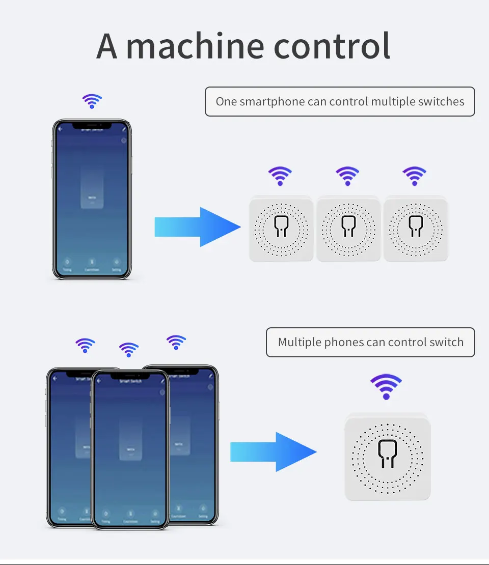 One mobile phone can control multiple switches, and one switch can be controlled by multiple mobile phones at the same time;