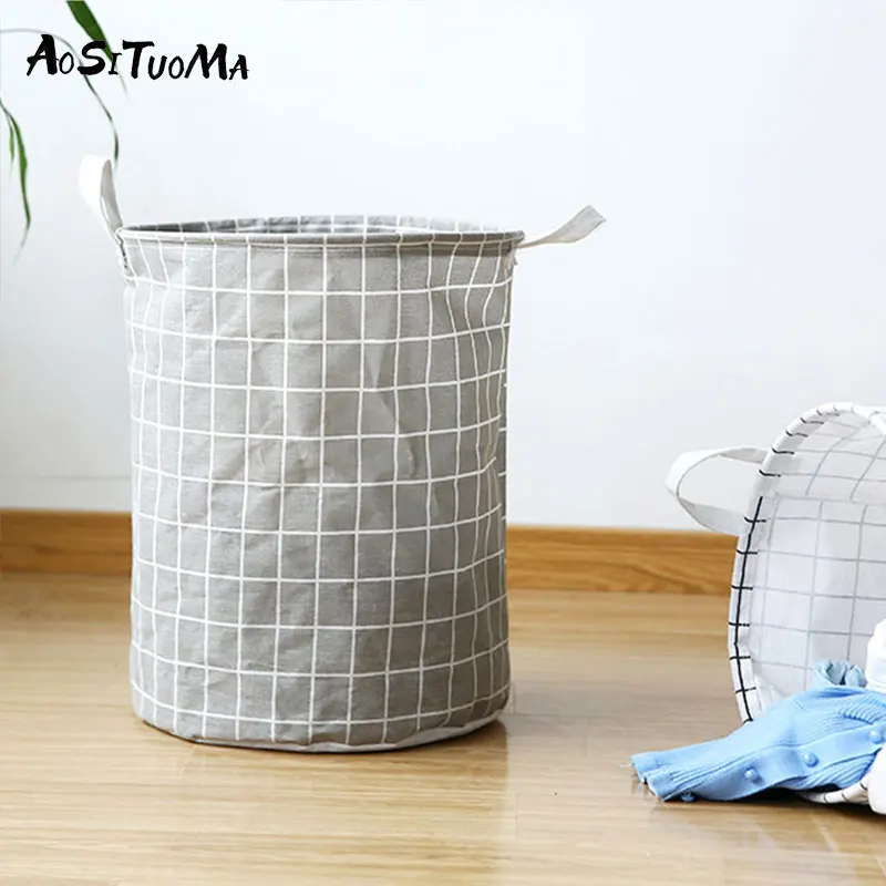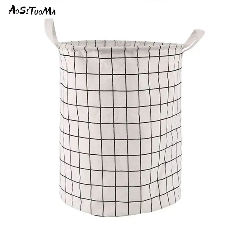 Small fresh laundry basketCotton and hemp material, increase the capacity, folding does not take up space.