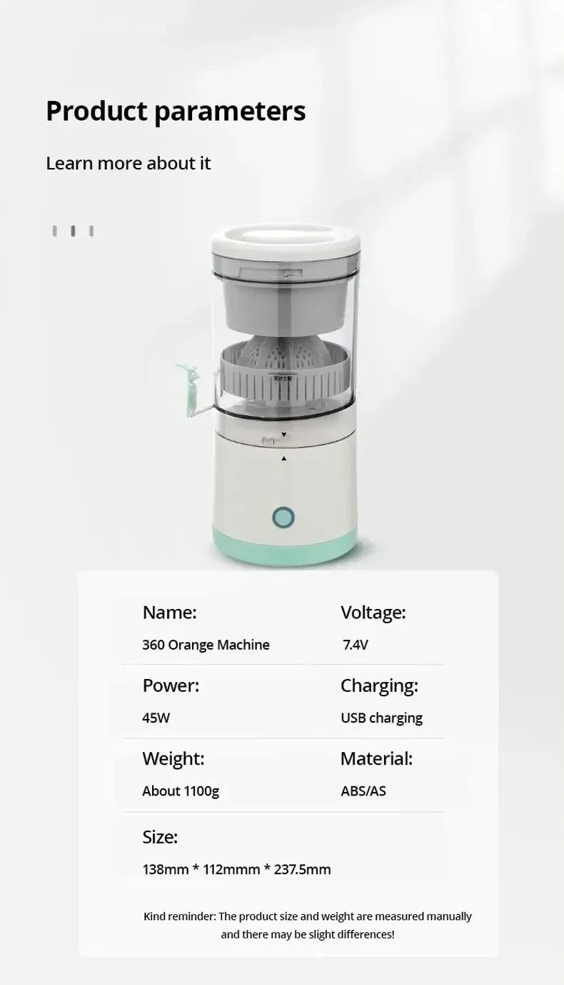 3, the size of the fruit is too large will lead to the product stuck can not work, this time to adjust the position of the fruit to continue to work. Must not use the product while charging!