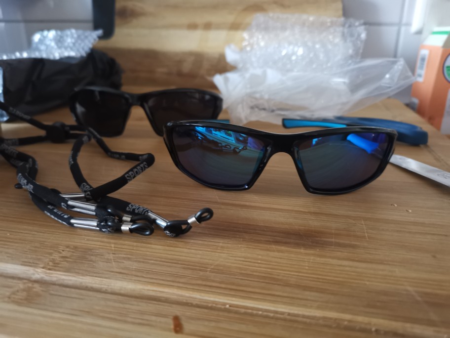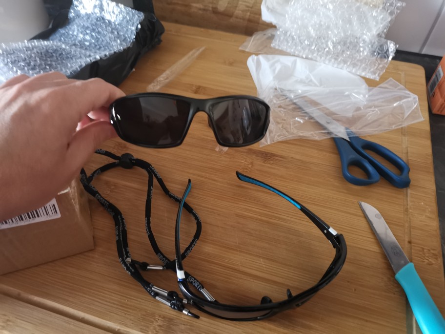 The glasses arrived in 10 days, in a vacuum package and a protective bag. The set has a good drawstring with adjustment, maybe a little short. Not every face will fit the form. Brother was taken for the car to replace the broken ones, polarization is present. Boldly recommend