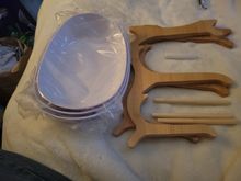 The stand is very nice. Attached glue to glue the stand. Very nice bowls with gloss, light. Delivery very fast. I recommend and thank you.