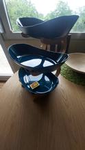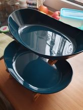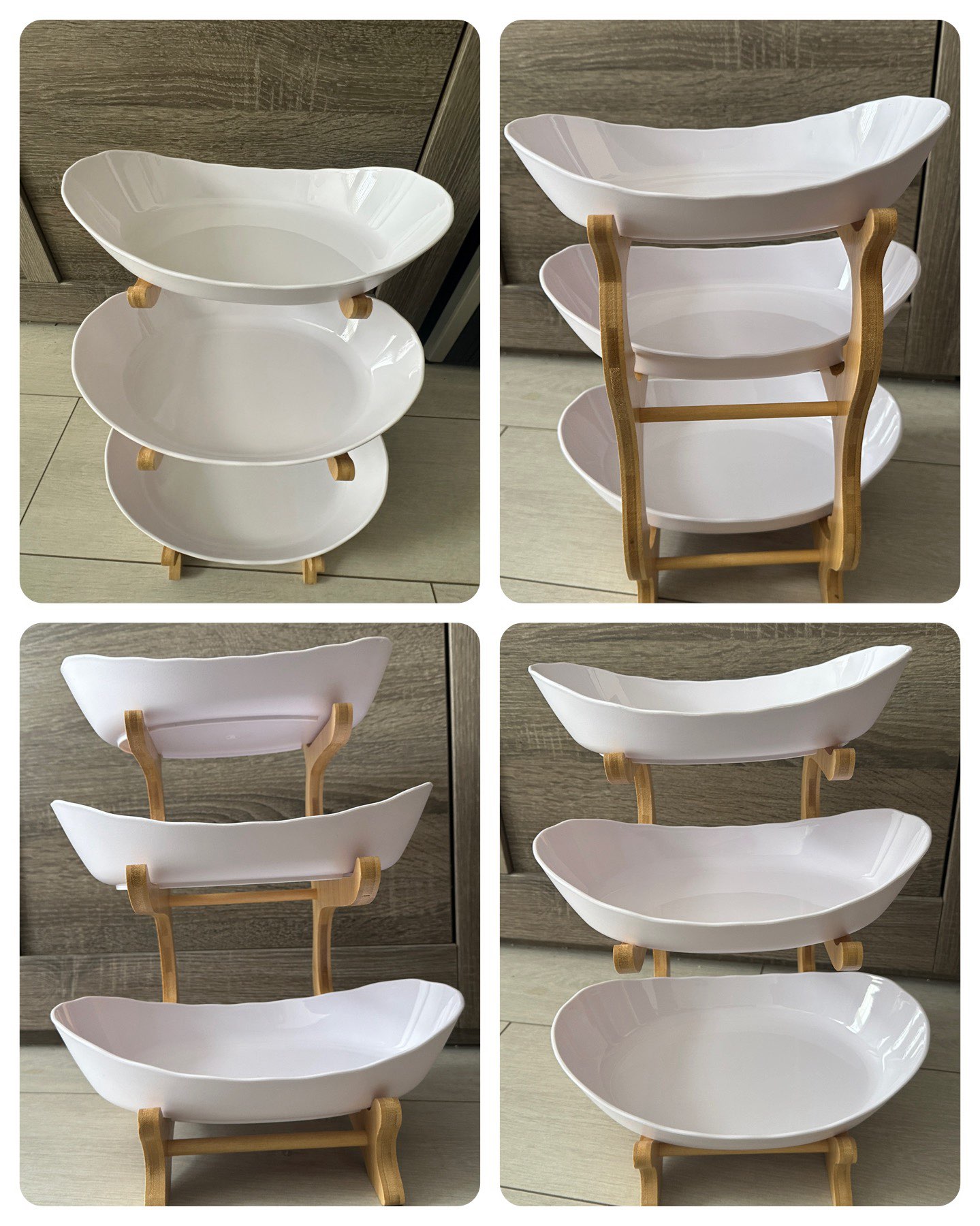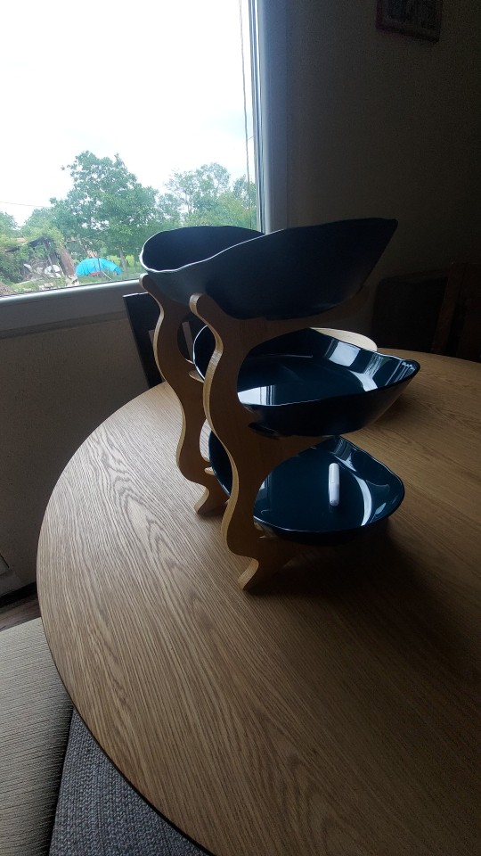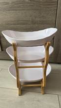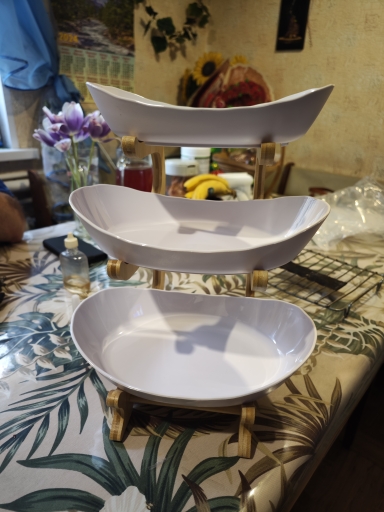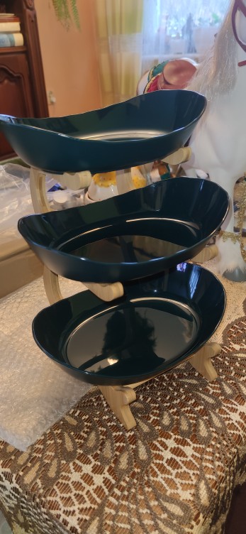 The goods arrived early, which was pleasantly surprised-I did not expect such a speed of delivery. The package was dented and damaged despite the warning pictogram, but the product is not damaged. Included glue for stand๐๐๐The tube is closed with a cap, under it there is a spout, under the spout the cover covers the tube, so do not press on the tube itself without removing it, otherwise the glue may splash out. The size of the cups is sufficient for a small amount of fruits, sweets and other sweets. The bowls are plastic, the quality is excellent. I recommend the product and seller.