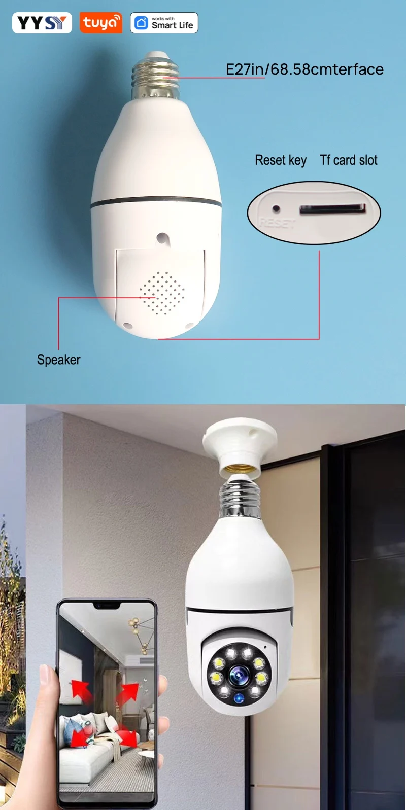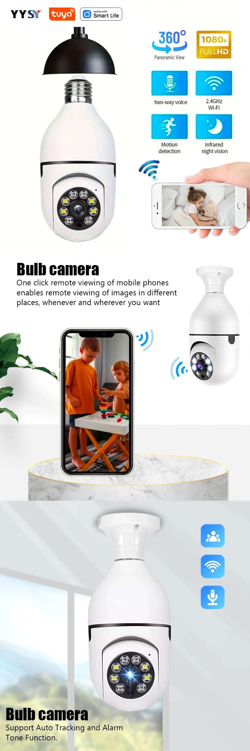 Tuya Smart 2.4G WiFi E27 Light Bulb Camera Smart Home Security Video Surveillance Supprt Two Way Audio Mobile Motion
